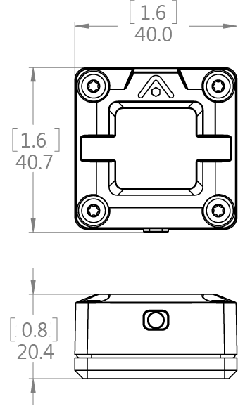 • Dimensions: 40 x 40.7 x 20.4 mm [1.6 x 1.6 x 0.8 in]